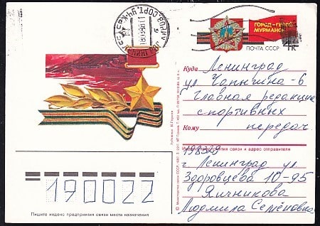 ПК с ОМ Город-герой Мурманск. Выпуск 18.12.1986 год, прошла почту