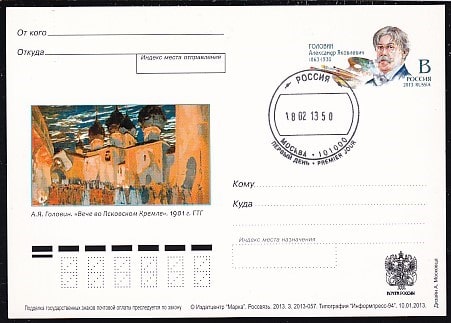 ПК с ОМ и гашением Первого дня "Головин А.Я.", 18.02.2013 год, Москва, №241