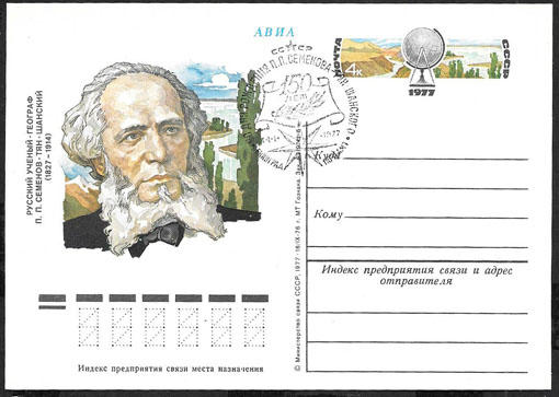 ПК с ОМ со спецгашением 150 лет со дня рождения П.П. Семенова -Тян -Шанского 1977 год. № 43