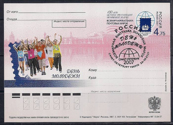 ПК со спецгашением. День молодежи, 25.06.2007 год, С/Пб