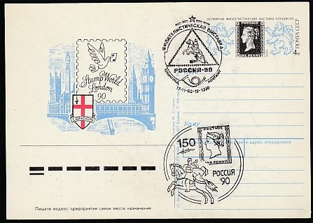 ПК с ОМ и спецгашением. Филвыставка "Россия-90", 17.11-02.12.1990 год, Ленинград, почтамт