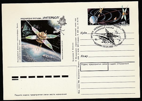 ПК с ОМ и СГ. Космические исследования по программе "Интербол", 03.08.1995 год, Москва, почтамт (№ 22)