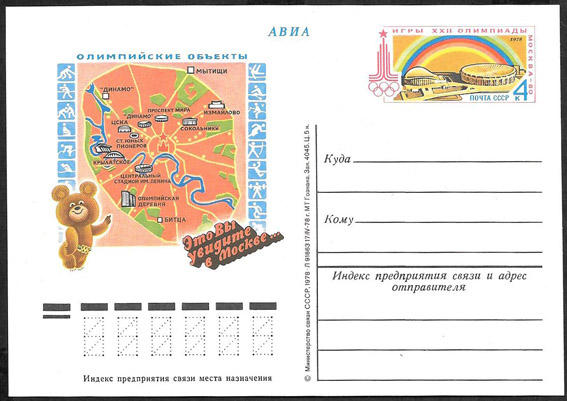 ПК с ОМ Игры XXII Олимпиады. Спортивные сооружения 17,4,1978 г. № 60