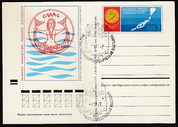 ПК с ОМ. II чемпионат Европы по скоростным видам подводного плавания, 1972 год, спецгашение.
