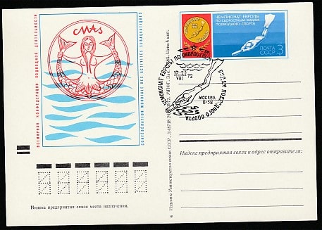 ПК с ОМ. II Чемпионат Европы по скоростным видам подводного плавания, № 6, спецгашение, 13-20.08.1972 год, Москва, Е-58