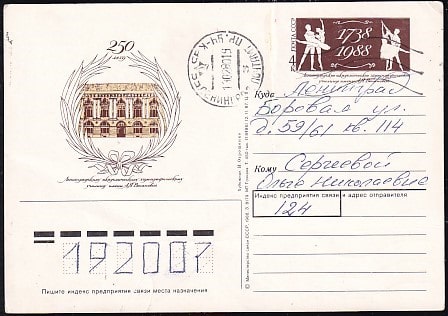ПК с ОМ Ленинградское хореографическое училище им. А.Я. Вагановой. Выпуск 12.11.1987 год, прошла почту