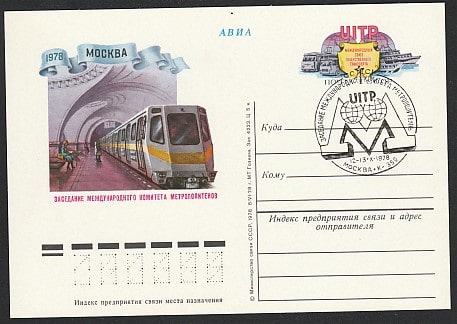 ПК с ОМ. Международный союз общественного транспорта. Метрополитен, № 68, спецгашение, 12-13.10.1978 год, Москва, К-350