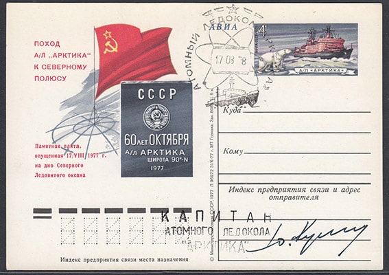 ПК с ОМ Поход советского атомного ледокола "Арктика" 1978 77 год. № 56 с автографом капитана Ю.С. Кучиева