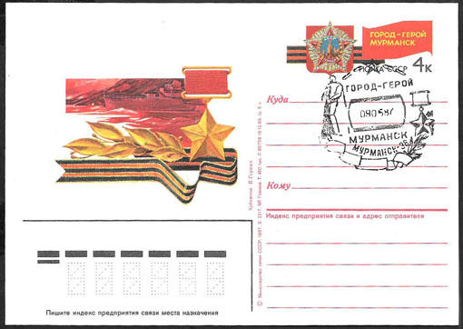 ПК с ОМ со СГ 30 лет Победы. Город- герой Мурманск 9,5,1987 г. № 163