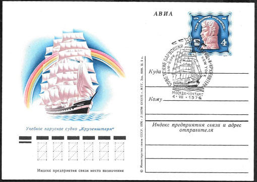 ПК с ОМ со спецгашением Учебное парусное судно "Крузенштерн" 04.07.1976 год. № 36а-1