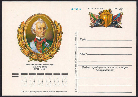 ПК с ОМ Великий русский полководец А. В. Суворов 1980 год. № 77