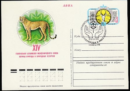 ПК с ОМ. XIV Генеральная ассамблея Международного союза охраны природы, № 66, спецгашение Филвыставка "Природа и мы", 20.01-05.02.1979 год, Москва