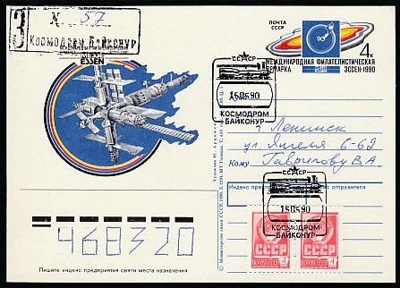 ПК с ОМ. Запуск РН "Союз-У" со спутником разведки "Космос-2078", гашение 15.05.1990 год, к/Байконур, прошла почту (+1Ю)