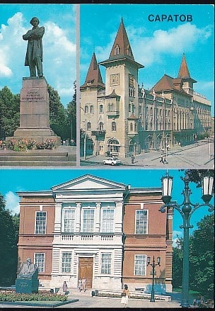 ПК Саратов. Памятник Н.Г. Чернышевскому. Саратовская консерватория. Худ. музей. Выпуск 28.11.1986 год