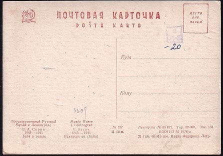 ПК "Серов В. А. Баба в телеге". Выпуск 1930-е годы