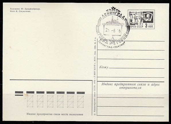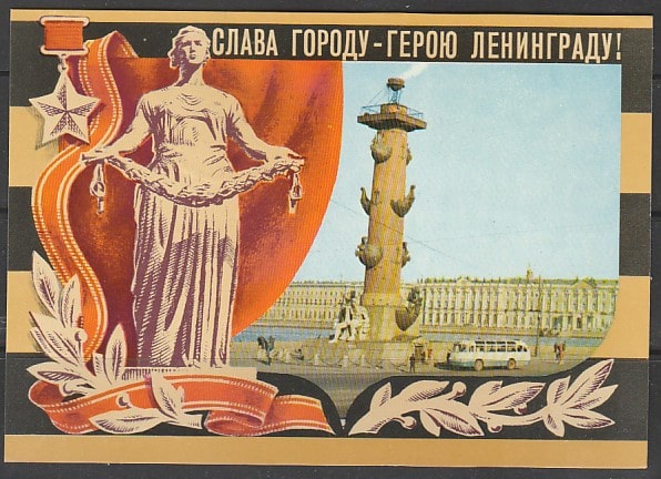 ПК. Слава городу - герою Ленинграду! 08.01.1975 год, спецгашение. СГ: Город - герой Ленинград, 25.06.1976 год, Ленинград, почтамт.