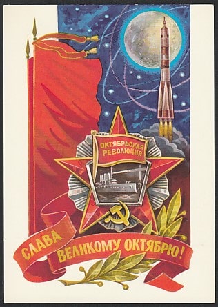 ПК. Слава Великому Октябрю! (худ. Л. Кузнецов) 24.01.1978 год. Космос. прошла почту. (2 Ю)