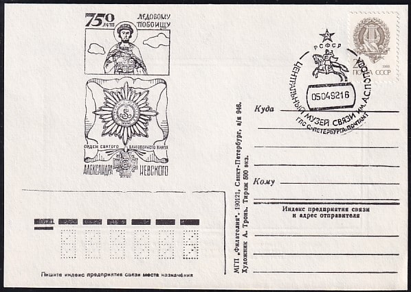 ПК со спецгашением - Центральный музей связи им. А. С. Попова, 5.04.92, Санкт-Петербург