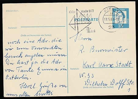 ПК со спецгашением. Кильская неделя, 23-30.06.1963 год, прошла почту