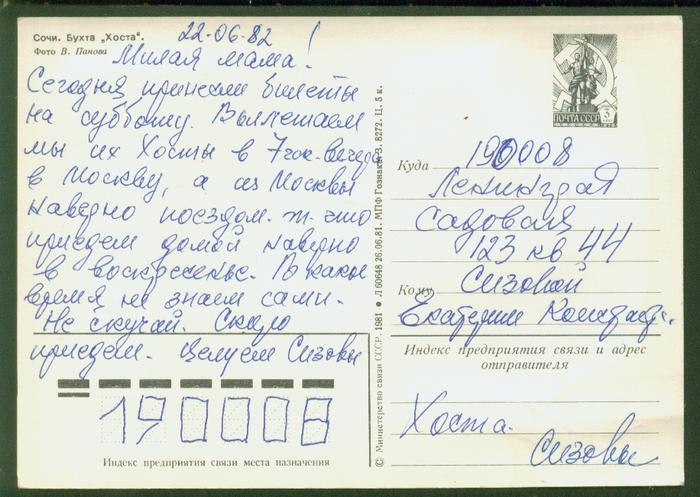 ПК Сочи. Бухта "Хоста". Выпуск 26.06.81 г. № 1542