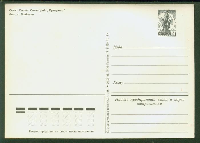 ПК Сочи. Хоста. Санаторий "Прогресс". Выпуск 26.05.81 г. № 1489