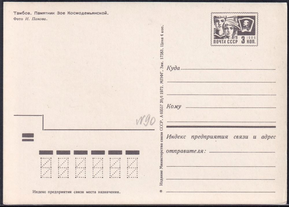 ПК. Тамбов. Памятник Зое Космодемьянской, 20.01.1972 год