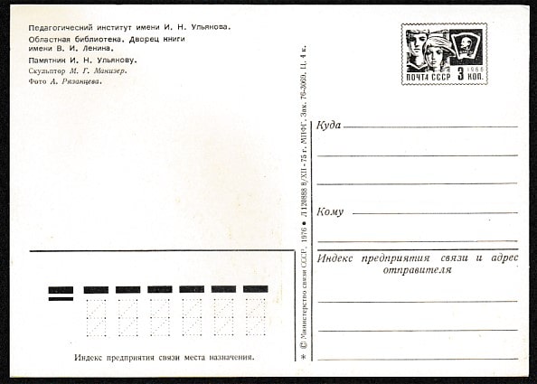 ПК. Ульяновск. Педагогический институт. Областная библиотека. Памятник И.Н. Ульянову, 08.12.1975 год.