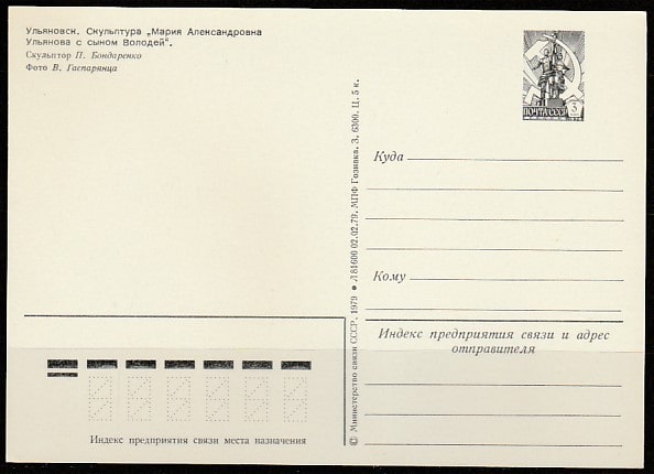 ПК. Ульяновск. Скульптура "М.А. Ульянова с сыном Володей", 02.02.1979 год.