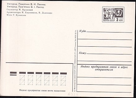 ПК "Ужгород. Памятник В.И. Ленину". Выпуск 19.10.1977 год