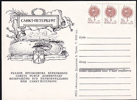 ПК "Возвращение городу исторического названия Санкт-Петербург", 6.09.1991 год
