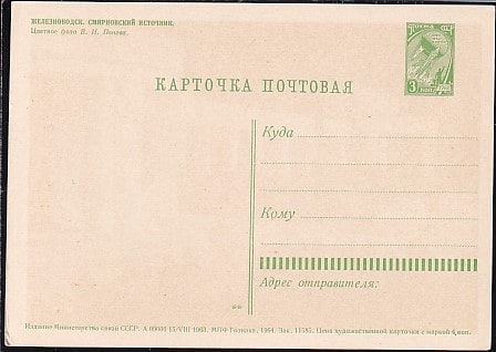 ПК "Железноводск. Смирновский источник". Выпуск 15.08.1963 год