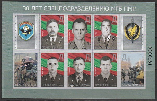 ПМР (Приднестровье) 2022 год. 30 лет спецподразделению МГБ ПМР, малый лист (н