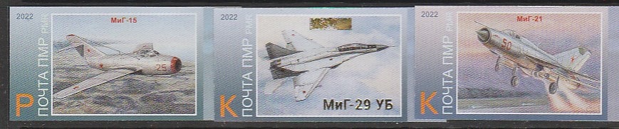 ПМР (Приднестровье) 2022 год. Самолёты Тираспольского аэродрома, 3 б/зубц. марки (н