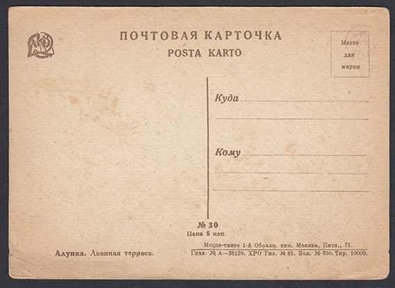 Почтовая карточка. Алупка. Львиная терраса