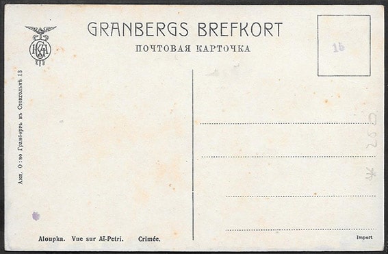 Почтовая карточка. Алупка. Вид на Ай-Петри. Крым