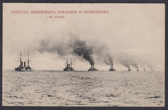 Почтовая карточка. Бригада линейных кораблей и крейсеров на походе. Изд. Изд. Фот. Иванова в Ревеле