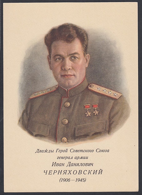 Почтовая карточка Дважды Герой Советского Союза генерал армии Иван Данилович Черняховский, 1950 год