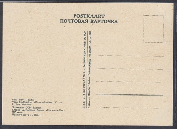 Почтовая карточка. Эстонская ССР, Таллин. Старая крепостная башня Кик-ин-де-Кэк. Фото П. Пере, 1955 год