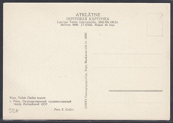 Почтовая карточка. г. Рига. Государственный художественный театр Латвийской ССР