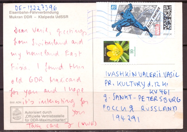 Почтовая карточка. ГДР. Корабль. Прошла почту 23.09.1986 год