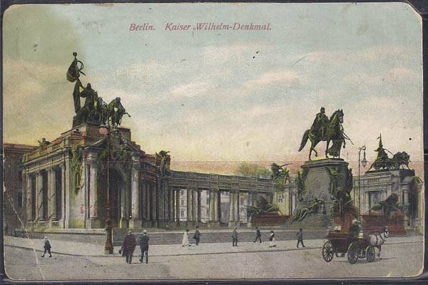 Почтовая карточка. Германия Берлин. Памятник Кайзеру Вильгельму, до 1917 года, прошла почту