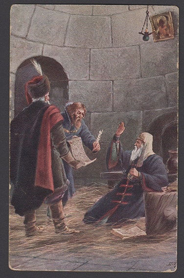 Почтовая карточка. Гранберг в Стокгольме. Святейший патриарх Гермоген в подземелье Чудова монастыря