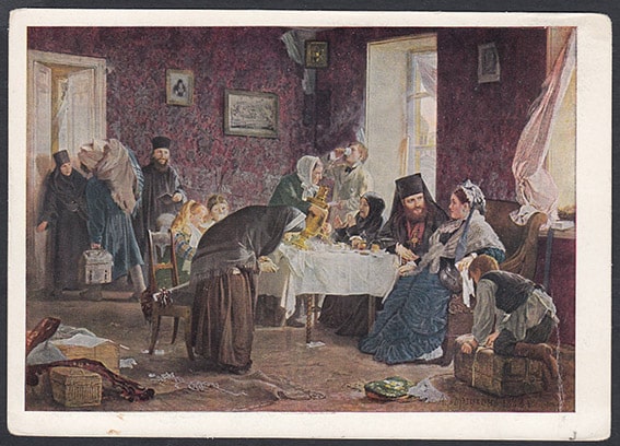 Почтовая карточка. Худ. Корзухин. В монастырской гостинице. 1882