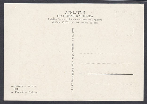 Почтовая карточка. Художник А. Грицай. Пейзаж, 1953 год
