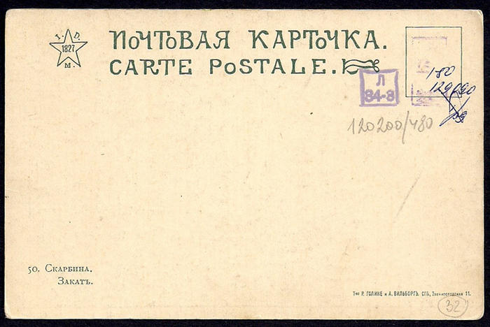Почтовая карточка. Художник Скарбина. Закат. 1910 г.