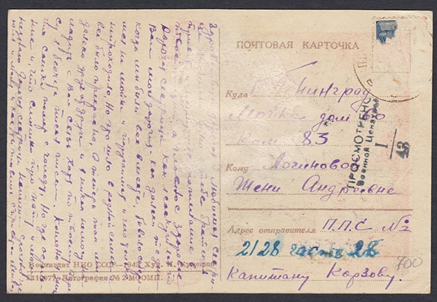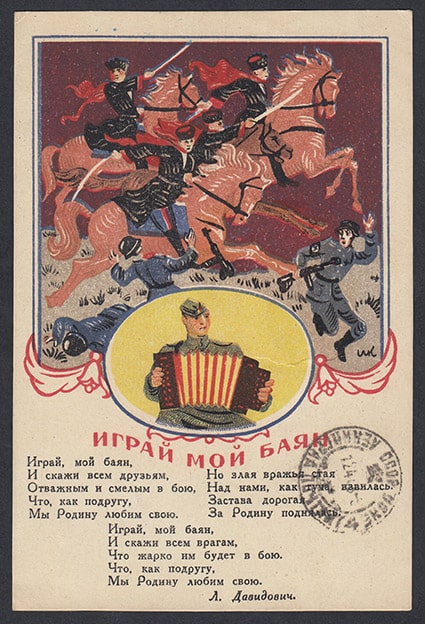 Почтовая карточка. Играй мой баян, прошла почту 1943 год