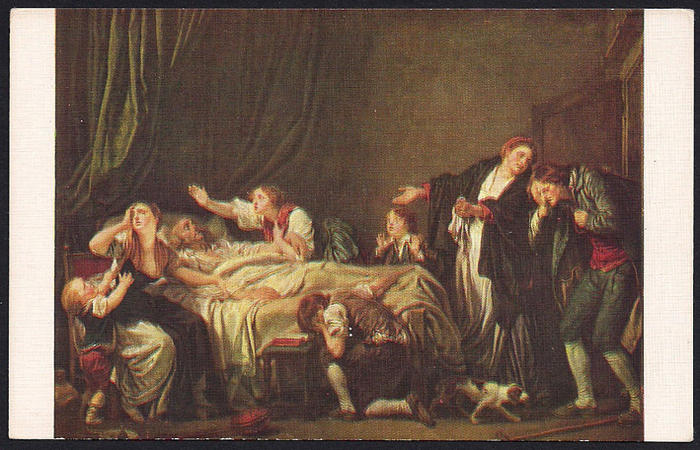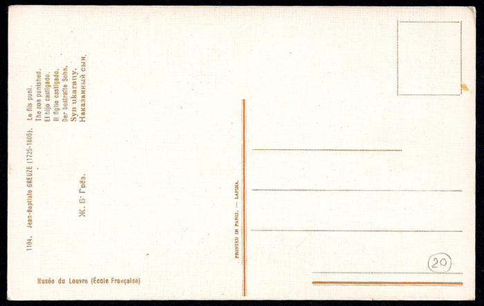 Почтовая карточка. Издание Лапина. Художник Грез. Наказанный сын. 1920 г.