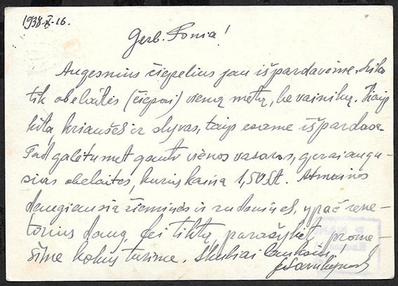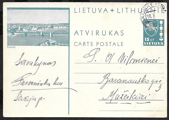 Почтовая карточка, Литва, Каунас, п.п. 18.10.1938 г.