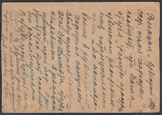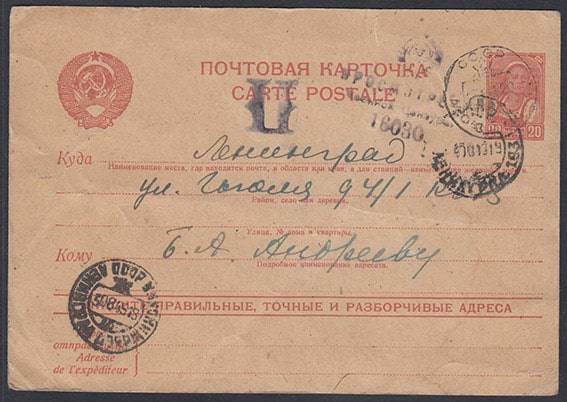 Почтовая карточка. Марка - Колхозница с серпом. 1939 г. Цензура 16030 1945 год