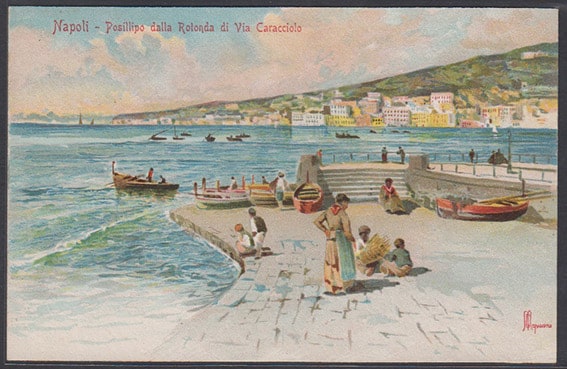 Почтовая карточка. Неаполь. Позиллипо от Виа Караччоло. Худ. М. Капуано. Италия